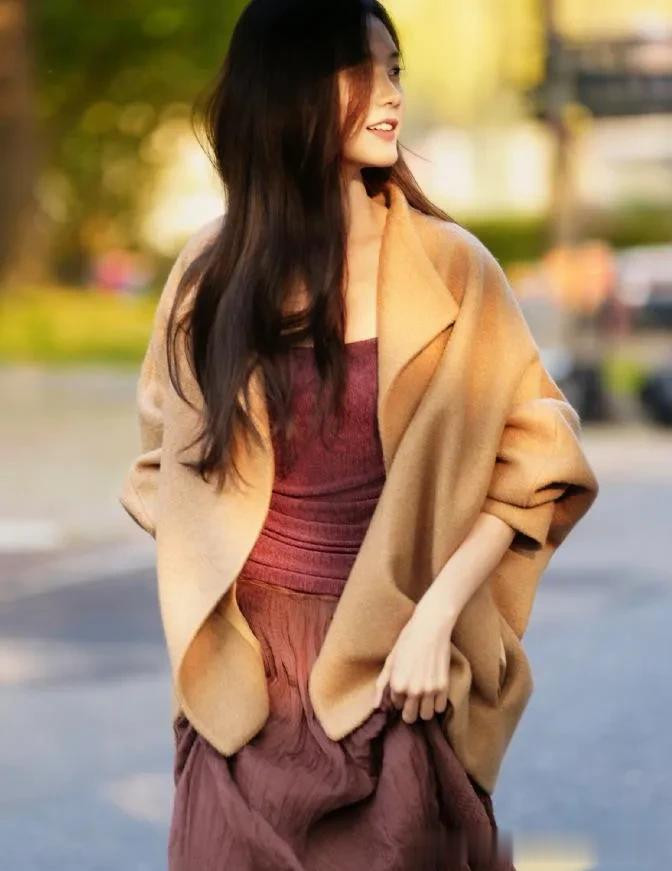 李一桐会穿是数一数二的! 驼色短大衣+抹胸裙, 高档又洋气!