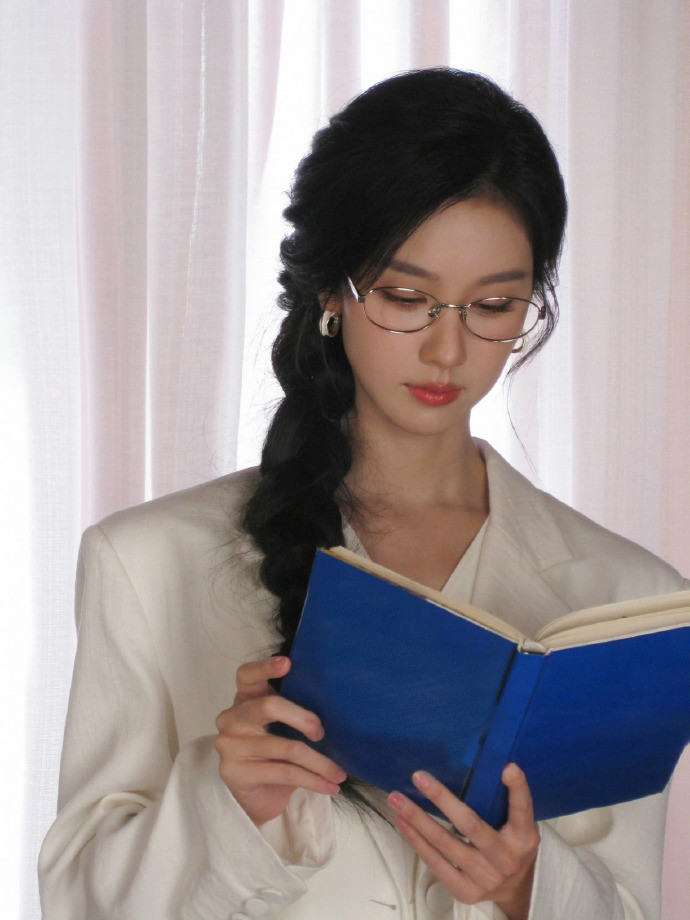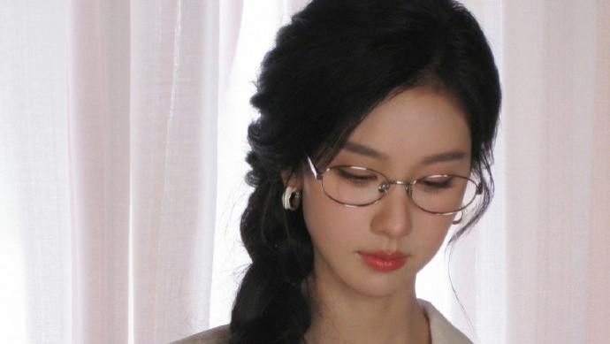 带上眼镜的陈齐灵,等于不同样,超nice的!
