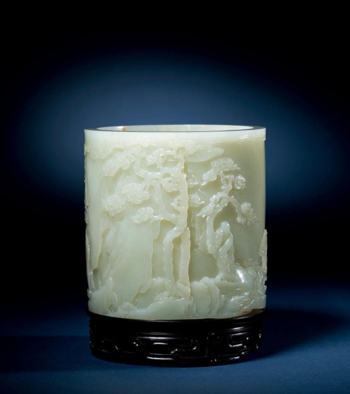 Lot 2194 清乾隆 白玉深山访友图笔筒 D 12.3 cm;H 12.5 cm 估价:RMB 1,500,000-2,000,000 1.斯宾克,伦敦。 2.世德堂庄贵仑先生旧藏。 展览:香港好意思术馆,《中国玉雕》,香港,1983年,图录页284,图264。 参阅:故宫博物院藏,白玉山水东说念主物图笔筒,新00006897;张广文主编,《故宫博物院藏文物珍品全集玉器(下)》,商务印书馆,第205页。 清乾隆白玉深山访友图笔筒,汲取浅深浮雕手法琢通景山水东说念主物,张开俨然一卷山水手卷:峻岭巍峨,崖壁嶙峋,山间松柏挺立,辽远瀑布自峻岭周折而下,汇入溪水淙淙。小石桥上,一幼稚负笈慢步前行。松桐映掩之间间,一老者倚松回望。画面刻画山行高士与随行书僮途中小憩之景,亦或暗合唐代诗僧贾岛那首脍炙东说念主口的《寻隐不遇》:“松下问幼稚,言师采药去。只在此山中,云深不知处。”合座意境幽远恬淡,属“画意玉器”杰作。 仿古纠玉厄 乾隆玉器除了玉山子、玉插屏外,尤以仿青铜器和仿痕玉为代表。乾隆天子好古而精鉴,常以诗文评点时作,曾借“玉卮”之喻,咨嗟良玉为俗工所误。为匡正时俗,重振高古,呐喊工匠以《西清古鉴》及清宫旧藏青铜器、古玉为范本治玉,所成器物既存玉质温润又得古器典雅。白玉雕苍龙教子洗即为此理念下的艺术结晶。