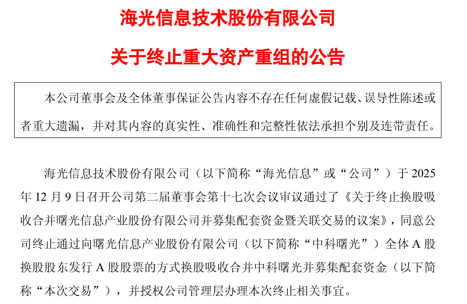 12月9日晚间,中科晨曦与海光信息同期发布公告,晓谕圮绝首要金钱重组。
